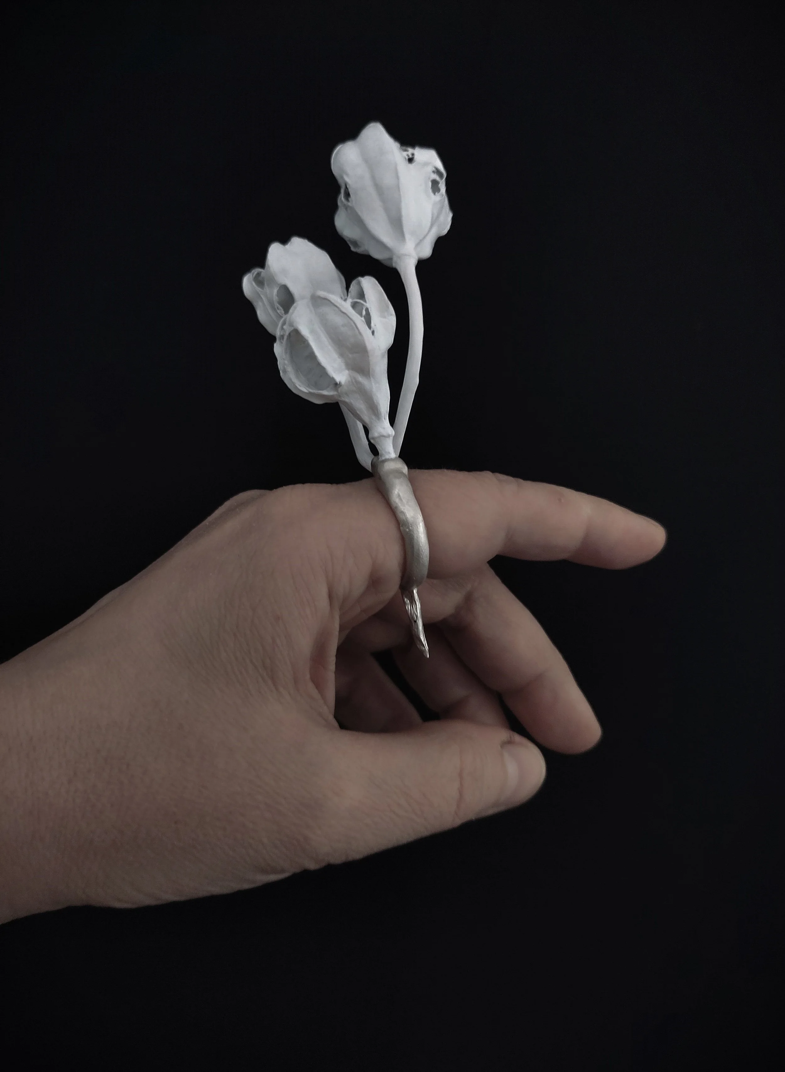 Hanna Kivelä on Valkeakoskella asuva korutaiteilija ja kultaseppä. Aiemmassa ammatissaan päihdetyön sairaanhoitajana hän käsitteli ihmisyyden arvoon ja varjopuoliin liittyviä aiheita, mikä on vaikuttanut merkittävästi Kivelän taiteelliseen ilmaisuun ja teemoihin. Kuvataiteen perusopinnot Sara Hildén -akatemiassa v. 2018-2025 innostivat hakeutumaan pitkäaikaista kutsumusta kohti, ja Kivelä valmistui kultasepäksi vuonna