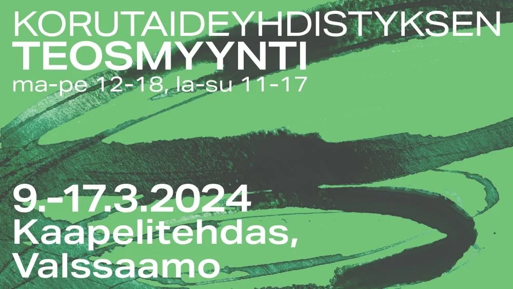 Korutaideyhdistyksen Teosmyynti järjestetään jälleen Kaapelitehtaan Valssaamossa maaliskuussa. Vuosittaisessa myyntinäyttelyssä nähdään runsas kattaus tuoreita teoksia niin uusilta lahjakkuuksilta kuin kansainvälisestikin tunnetuilta korutaiteen uranuurtajilta. Tänä vuonna tapahtumaan osallistuu 42 taiteilijaa.